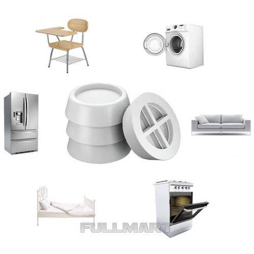 Антивибрационные подкладки под ножки стиральных машин и другой бытовой техники значительно снижают шум и неприятные вибрации, производимые устройствами, которые вредят как пользователям, так и самой технике. Они предотвращают перемещение устройства, которое может поцарапать пол.