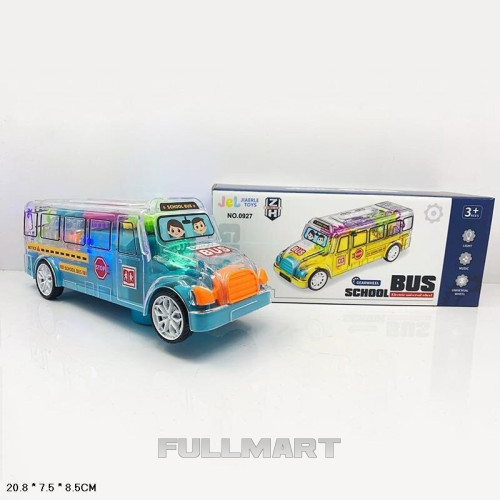 Прозрачная машинка со световыми и музыкальными эффектами не оставит равнодушным Вашего ребенка. Сквозь прозрачный корпус видно, как крутятся шестеренки, светятся светодиодные лампочки, при этом играет музыка. Машинка-автобус, наткнувшись на препятствие, поворачивается и едет в другом направлении.