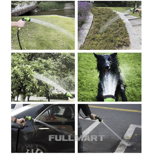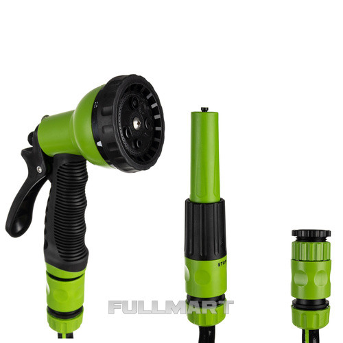 полный комплект для полива – вы получаете все необходимое: автоматическую катушку, 25 м шланга, 7-функциональный пистолет, насадки, соединители, настенный кронштейн с поворотом на 180° и даже 2-метровый шланг подачи