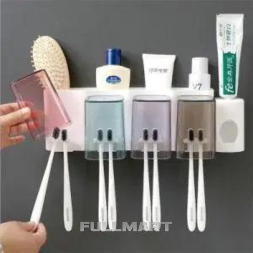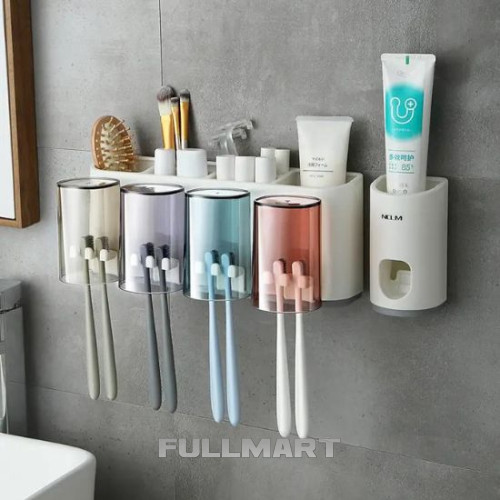 Устройство обладает сразу несколькими функциями: держатель для зубных щеток, механический дозатор зубной пасты, набор индивидуальных стаканчиков из 4 штук, изящно собирающихся в конструкцию органайзера. Такой набор для гигиены в ванную комнату отлично подойдет для большой семьи, а также станет отличным подарком, ведь вмещает в себя 4 стаканчика и 8 зубных щеток!