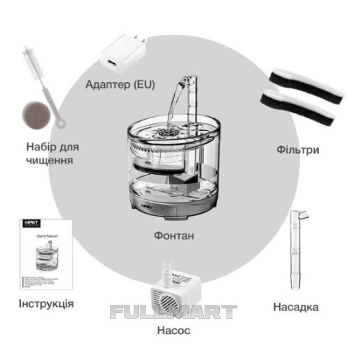 Объем резервуара составляет 1,5 литра, а материал, из которого изготовлен фонтан, является безопасным пластиком ABS.