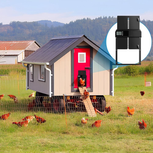 Автоматичні двері курника є практичним рішенням для шкірного фермера – оснащені таймером та датчиком освітленості, вони забезпечують зручне відкриття та закриття у призначену годину. Міцна металева конструкція гарантує довговічність та безпеку птиці. Ідеально підходить для повсякденного догляду без необхідності рано вставати!