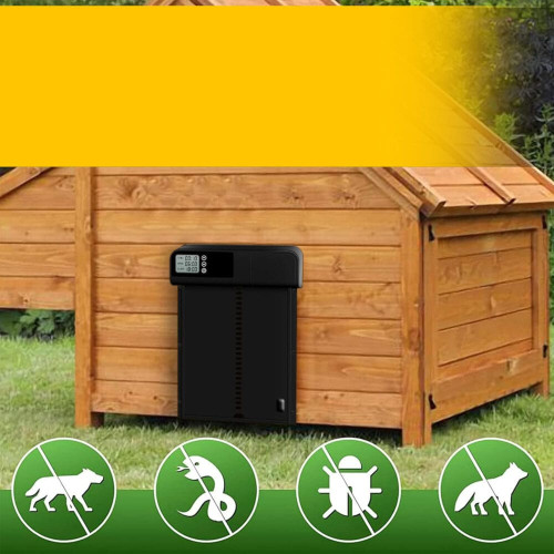 Вбудований світлодіодний дисплей та 24-річний таймер дозволяють програмувати годину відкриття та закриття дверей відповідно до ритму дня ваших курчат. Точність до однієї хвилини означає повний контроль без потреби щоденного контролю. Це рішення, створене для вашого часу та душевного спокою.