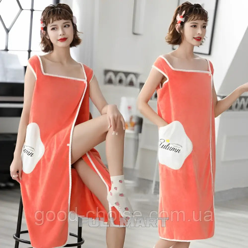 Полотенце халат - это мягкое и практичное изделие, предназначенное для использования после душа, ванны или в сауне. Оно выполнено из высококачественного материала. Женский халат имеет легкий и комфортный дизайн, обеспечивающий свободу движений.