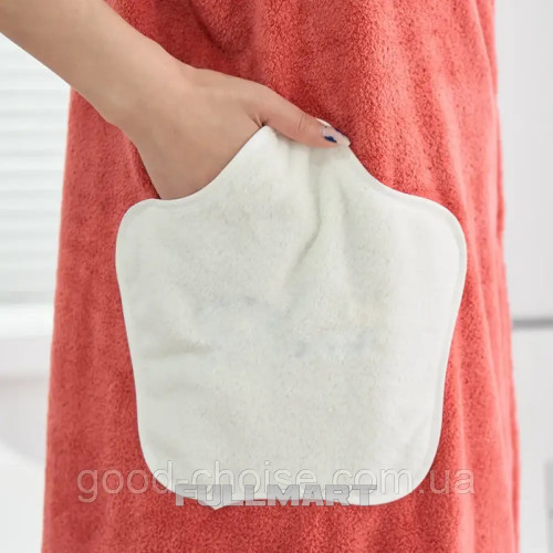 Полотенце для сауны имеет большие размеры, чтобы обеспечить достаточное покрытие тела. Имеет кнопки для фиксации вокруг тела и сохранения комфортной посадки. Полотенце имеет небольшой карман.