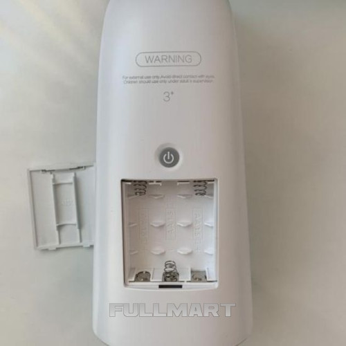 Работает устройство от трех AA батареек. Если заряда батареек недостаточно для дальнейшего функционирования диспенсера - на верхней панели устройства загорится красный индикатор.