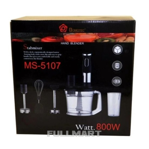 Блендер ручной 6 в 1 Domotec MS 5107 способен измельчить большие объемы продуктов за несколько мгновений.