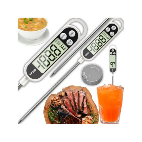 Кухонний термометр Retoo - це надійний прилад для точного вимірювання температури в широкому діапазоні від -50°C до +300°C, що ідеально підходить для приготування м'яса, смаження на грилі, у фритюрі, випічки та вимірювання температури напоїв. Завдяки вбудованому РК-дисплею та функції HOLD, користувач може легко зчитувати результати навіть при слабкому освітленні. Компактний розмір та ергономічний дизайн забезпечують зручність використання, а швидкий час відгуку гарантує точні результати лише за кілька секунд. Працює від батарейки LR44, що робить термометр зручним, економічним та довговічним.