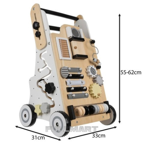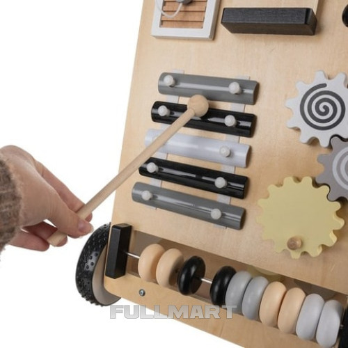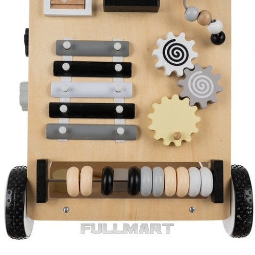 манипуляционная доска - толкатель оснащен многофункциональной манипуляционной доской, на которой размещены: тарелки, счеты, лабиринт, движущиеся шары, шестеренки, зеркало, открывающиеся двери и головоломки с фигурами, каждая стена предлагает различные виды деятельности, которые обеспечивают долгие часы веселья и способствуют развитию способностей ребенка