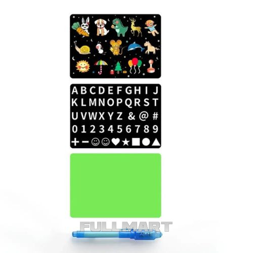 Комплект аксессуаров : Позволяет писать и рисовать сразу после покупки, включены две доски для копирования и одна светящаяся ручка.