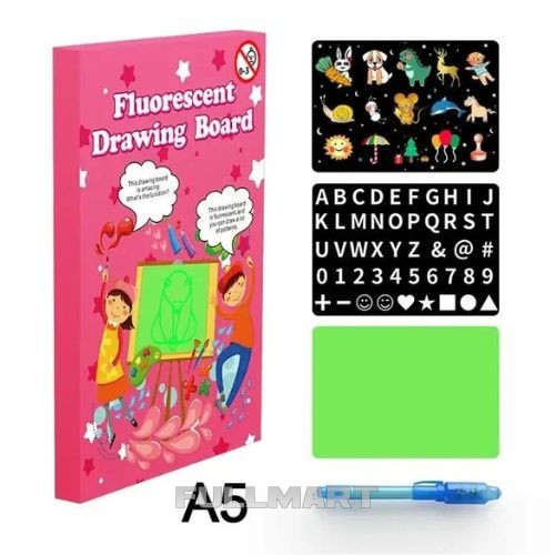 Детская доска для рисования размера А5 Raw JSK-FA5 Флуоресцентная доска для рисования с трафаретом