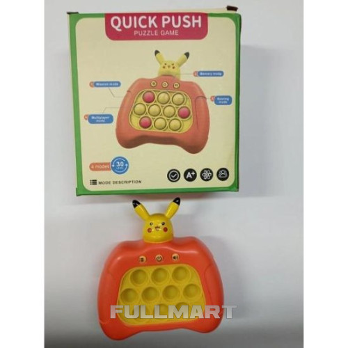 Игра Finger Press Pop-It Console Пикачу, в коробке Интересный поп-ит, который привлечет внимание вашего ребенка на долгое время. Он поможет развить младенцу память, моторику пальцев и внимательность. А простое и интуитивно понятное управление доступно даже самым маленьким.
