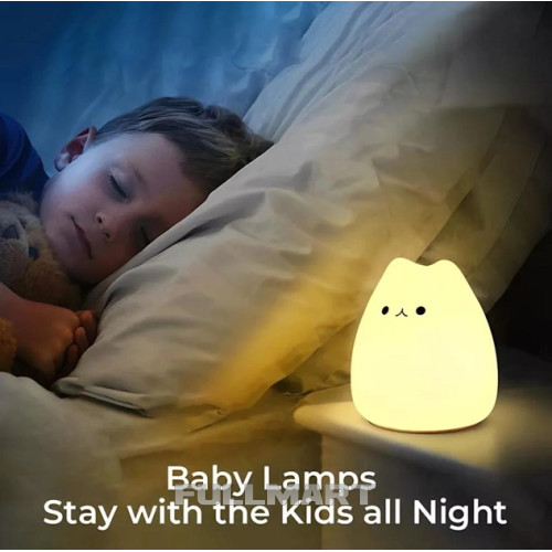 Детский ночник Little Cat Silicone Light силиконовый светильник в виде милого котика 7 RGB цветовКомпактный LED светильник в виде милого котика, удобно использовать как настольный светильник и ночник для комнаты. Невероятно мягкий материал и красивый теплый свет свечения ночника можно оценить с первого включения и прикосновения к нему. Лампа безопасна, не нагревается.