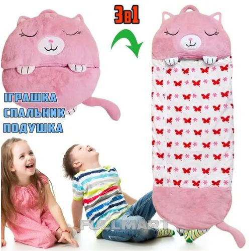 Детский спальный мешок-подушка Розовый котик Baby sleeping bag 3 в 1 Игрушка подушка и спальный мешок.