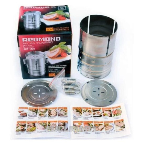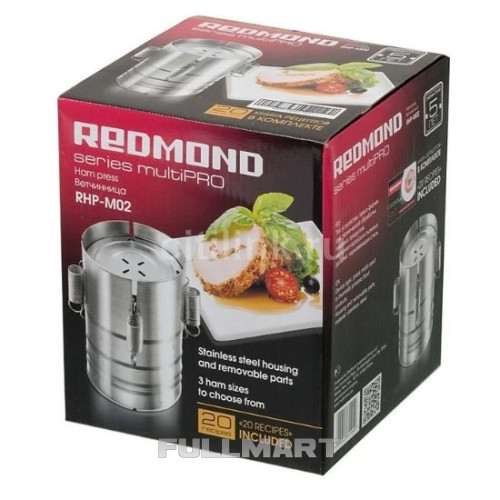 Домашняя Ветчинница REDMOND предназначена для приготовления в домашних условиях - ветчины, рулетов и других деликатесов из мяса, птицы, рыбы с добавлением различных специй и наполнителей. Принцип работы ветчинницы заключается в сдавливании ингредиентов внутри пресс-формы при одновременной тепловой обработке (варке, запекании). С ветчинницей REDMOND вы будете баловать своих близких и гостей вкусными деликатесами, приготовленными из натуральных продуктов без использования каких-либо консервантов и красителей. Вы можете использовать ветчинницу в мультиварке (с объемом чаши не менее 5 литров), а также в духовом шкафу, аэрогриле или просто в кастрюле соответствующего объема на плите. Специально для вас компания REDMOND разработала 20 рецептов различных блюд, которые вы можете приготовить с помощью данного устройства. С рецептами вы можете ознакомиться в приложении к руководству по эксплуатации.