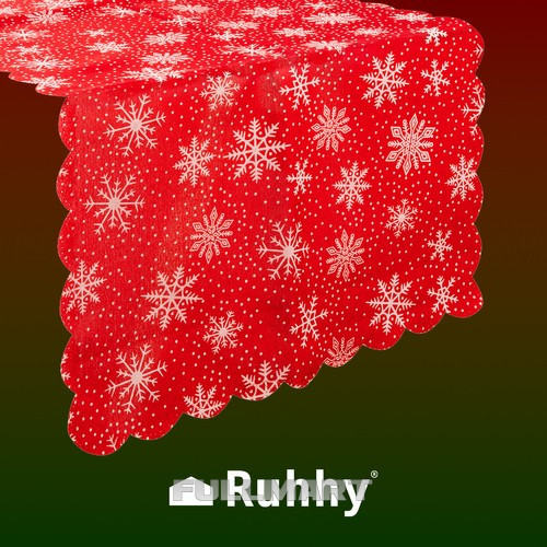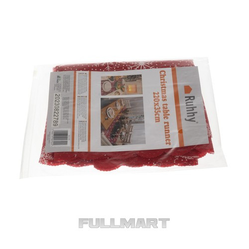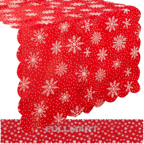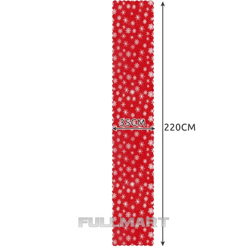 ОЧЕНЬ ДЛИННАЯ СТУПЕНЬ ДЛЯ РОЖДЕСТВЕНСКОГО СТОЛА, КРАСНАЯ С БЕЛЫМИ СНЕЖИНКАМИ, 220 x 35 см