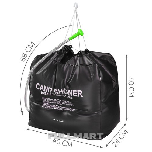- СПЕЦИФИКАЦИЯ - емкость: 20 л; рекомендуемое время нагревания на солнце: 3-6 часов; длина шланга с душевой насадкой: 68 см; размеры: 40 х 40 х 24 см; вес душа: 0,476 кг; вес душа с упаковкой: 0,553 кг.