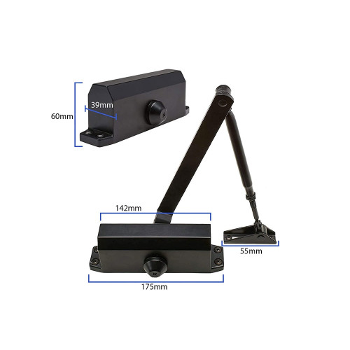 Цей доводчик дверей підходить як для внутрішніх, так і для зовнішніх дверей, правих або лівих, з максимальною вагою 65 кг і максимальною шириною 1100 мм. Виріб легко встановлюється – його можна закріпити за допомогою простих інструментів. Елемент виготовлений з алюмінію, що робить його міцним, а матеріал запобігає деформації важеля доводчика – двері рухатимуться плавно навіть при різких рухах. Виріб можна регулювати, захищаючи приміщення від протягів.