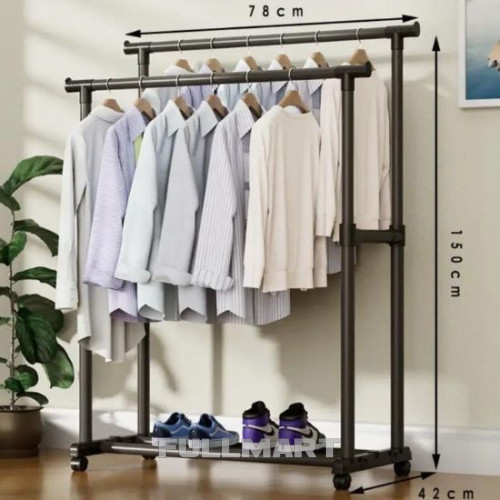 Double Pole 3 JL-DSG-8641 для удобного и компактного хранения одежды в любом месте квартиры. Она легко собирается без болтов и шурупов за 20-30 минут. Все трубки скрепляются большими зажимами. Стойка изготовлена из прочных материалов, что обеспечивает надежность и устойчивость. Благодаря колесам её можно легко перемещать даже с загруженной одеждой. Поперечные планки удобны для размещения выглаженных брюк и других вещей.