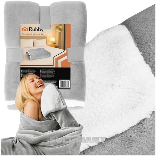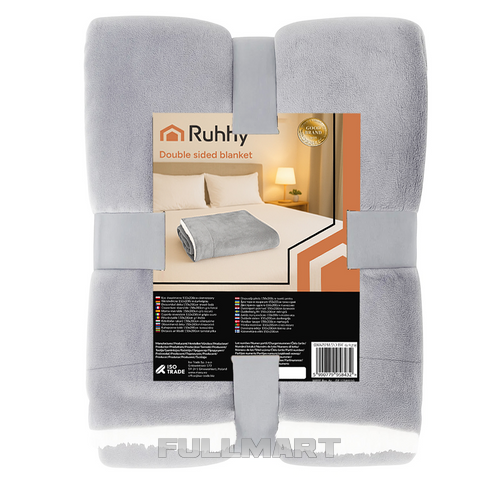 Плотное двухстороннее покрывало, накидка на кровать или диван, светло-серое, 150х200 см RUHHY – мягкость, тепло и стиль в одном движении
