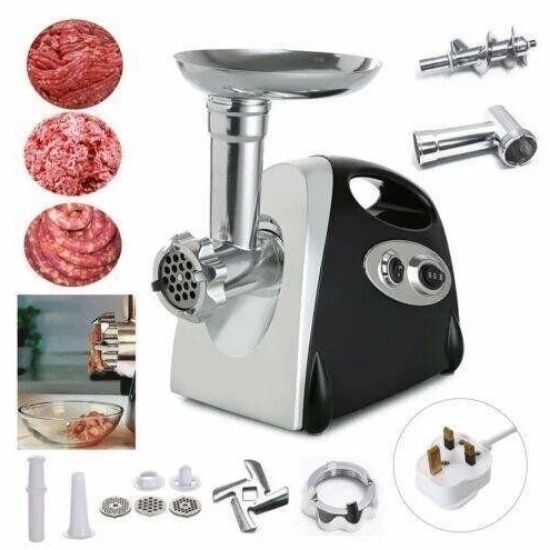 Электрическая мясорубка это необходимая вещь на кухне каждой хозяйки. При помощи данной мясорубки Вы сможете быстро приготовить нежнейший фарш для любых блюд, а так эе сок из овощей и фруктов. Мощность устройства 2200 Вт, за минуту его эксплуатации вы сможете приготовить 1 кг фарша. Дополнительно в комплекте поставляются три решетки разного диаметра при помощи, которых вы сможете регулировать степень помола мяса для приготовления различных мясных блюд. С помощью мясорубки вы сможете буквально за минуты приготовить качественный однородный фарш легко и без усилий. Характеристики: 220В 50 Hz 1000Вт мощный двигатель выполняет предовосходное измельчение эффективность помола мяса 1кг/мин большой металлический бункер пластиковый корпус двигателя низкий уровень шума, функция реверса съемные алюминиевые литые детали съемный металлический поднос для еды Комплектация: сменные режущие пластины (грубые, средние, мелкие) 3 вида фирменных дисков крестообразный режущий нож насадки для соковыжималки для томатов насадка для колбас и кебаба руководство пользователя