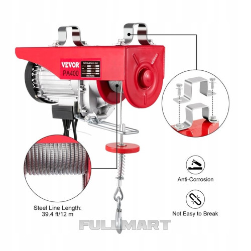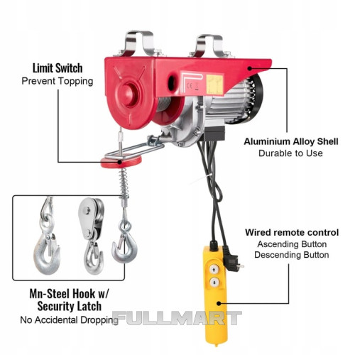 Этот подъемник предназначен для подъема и перемещения тяжелых предметов. Стальная конструкция и двигатель чистой меди обеспечивают долговечность и высокую производительность. Подъемник можно использовать с одной линией грузоподъемностью 440 фунтов/200 кг или двойной линией грузоподъемностью 880 фунтов/400 кг. Это идеальный инструмент для транспортировки на заводах, доках, складах, грузовых кранах, строительных площадках и других местах.