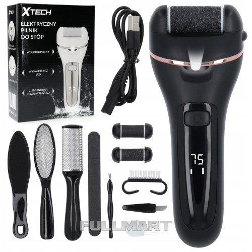 Электрическая пилочка для ног предназначена для удаления мертвой кожи. Устройство имеет двухступенчатую регулировку скорости, что позволяет регулировать интенсивность стирания под индивидуальные потребности. Он оснащен ЖК-дисплеем, на котором отображается уровень заряда и выбран режим скорости. Файл также имеет свет, освещающий область, где выполняется процедура. В набор входят три сменные насадки, адаптированные к разным типам кожи. В комплекте входит дополнительное оборудование.