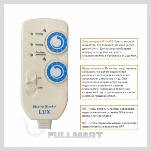 Эта электропростынь обеспечивает комфортный отдых даже при низкой температуре в комнате, после чего тепло равномерно распределяется по всей поверхности изделия.