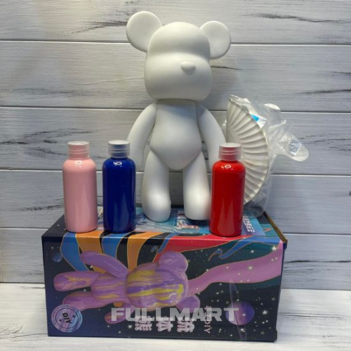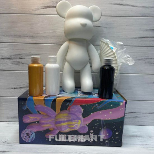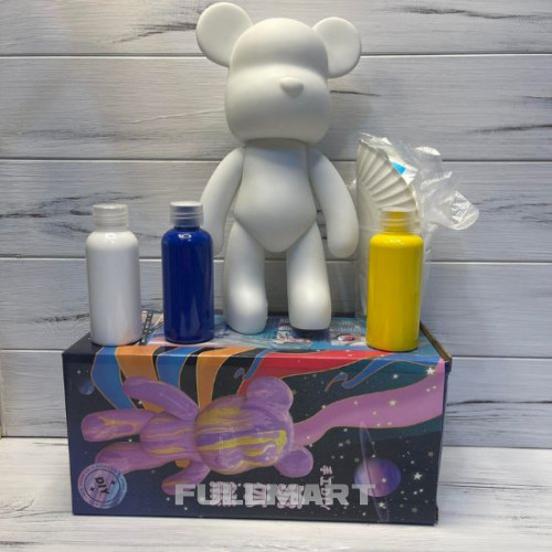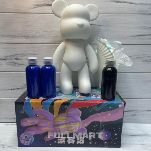 Флюидный медвежонок Punk Fluid Bear Bearbrick с красками детский набор для творчества сделай сам DIY мишка флюид-арт 23 см