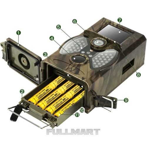 Фотоловушка — это устройство, специализированное для фото- и видеосъемки вне дома. Камера оснащена высокочувствительным PIR-сенсором, который обнаруживает движение вокруг себя. После фиксации движения широкоугольный объектив (100 градусов) делает снимок, серию фотографий или начинает запись видео, в зависимости от выбранных нами настроек. Все снято в качестве Full HD, а видео также получаются очень плавными, так как записываются с частотой 15 кадров в секунду. Изделие имеет целых 40 инфракрасных светодиодов, которые отлично подсвечивают фото и видео в темное время суток.