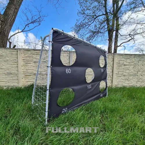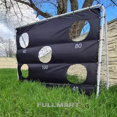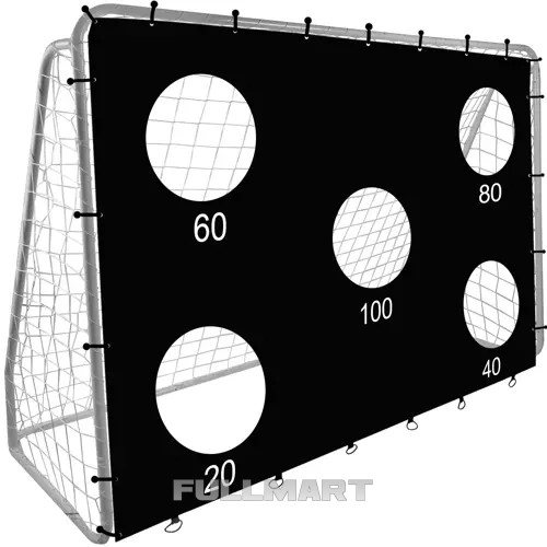 - ПРИЦЕЛОЧНЫЙ МАТ – В комплект ворот входит прицельный коврик для отработки точных ударов. Когда вы поставите его на ворота, будет всего 5 видимых мест, через которые можно забить гол. Каждой лунке присваивается определенное количество очков. Панель крепится с помощью специальных резинок, входящих в комплект.