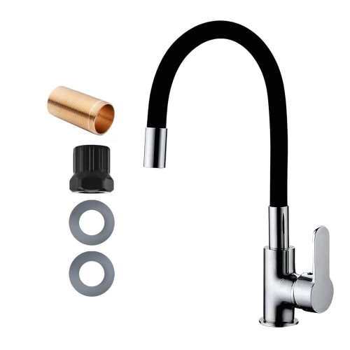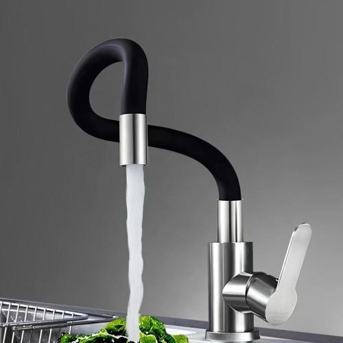 Цей гнучкий кухонний змішувач з гнучким виливом на 360 ° в елегантному чорному кольорі поєднує сучасний дизайн і повну функціональність. Він ідеально підходить для миття, забезпечуючи свободу рухів та комфорт під час повсякденних кухонних робіт.