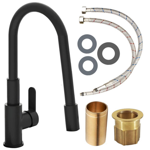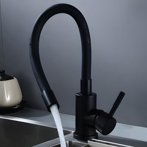 Гнучкий змішувач для кухонного миття з гнучким виливом, що обертається на 360 °. Сучасний дизайн в елегантному чорному кольорі поєднує функціональність і стиль. Ідеально підходить для кухні та забезпечує комфорт.