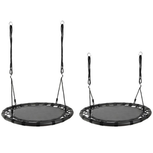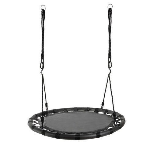 ВЕЛИКЕ СИДІННЯ - гойдалка має широке кругле сидіння, виготовлене із залізної рами, матеріал - поліестер + нейлон + Ева . Вантажопідйомність до 150 кг можлива завдяки використанню плетених канатів завтовшки 10 мм. Це гарантує безпеку та дозволяє навіть дорослим пережити хвилини радості. Це ідеальне рішення для великої родини. Його розмір і форма роблять його придатним для кількох людей.