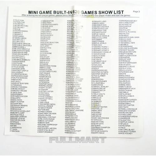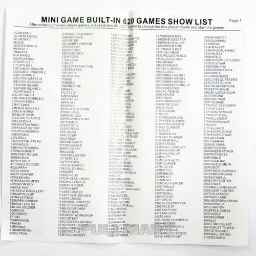 Окунитесь в мир ностальгии по 90-м при помощи игровой приставки в новом формате. Развейте скучные вечера в семейном кругу или в компании друзей. С приставкой идет 620 восьмибитных (8 бит) встроенных игр, среди которых вы наверняка найдете любимые игры детства или откроете для себя новые. Играйте в новом формате. Приставка подключается к телевизору через AV кабель. Денди имеет реальных 620 встроенных игр, неповторяющихся. Консоль не поддерживает картриджс играми - но среди 620 встроенных игр есть практически все самое интересное и даже больше: Контра, Марио, Pac Man, Черепашки, Чип и Дейли многое другое.