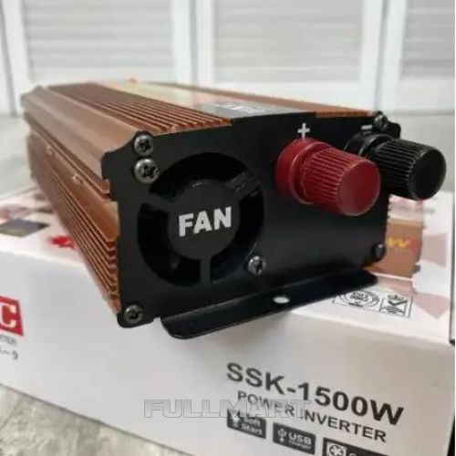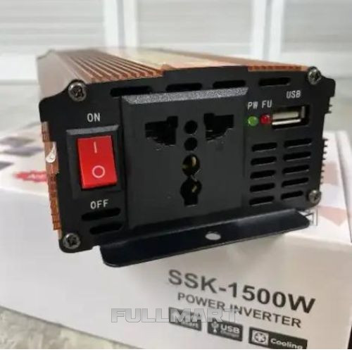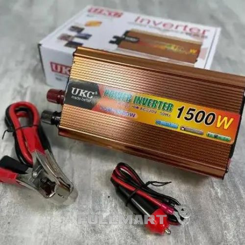 UKC POWER INVERTER 12 V 1500 WATT предназначен для преобразования электричества с 12 В на 220 В. Позволяет подключать нагрузку до 1500 Вт. Например: видеокамеру, телефон, ноутбук, аудио- и видеотехнику и другие электроприборы. Корпус сделан из алюминия, на задней части расположены клеммы, а также вентилятор для охлаждения прибора. Впереди расположены розетка, кнопка вкл./выкл., а также световые индикаторы режимов работы. Прибор можно подсоединять как через прикуриватель, так и непосредственно к клеммам аккумулятора.