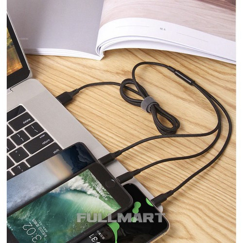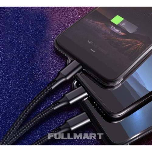 Кабель для зарядки телефона 3-в-1 с 3 входами для телефонов Lightning, Micro-USB и USB Type-C. Очень универсальный кабель будет работать в любой сложной ситуации. Кружевная оплетка и металлические наконечники обеспечивают длительное использование.