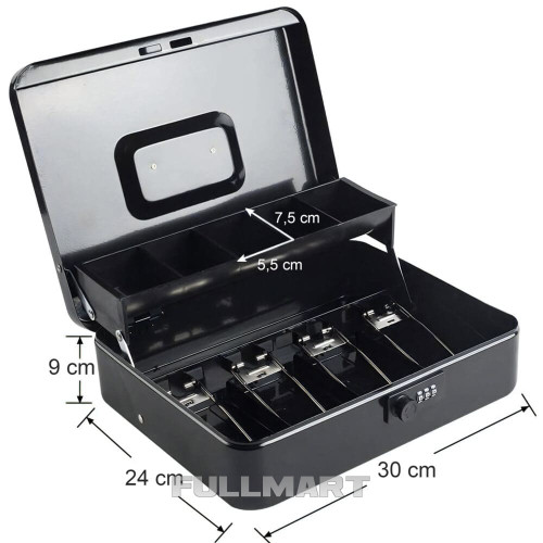 Большой металлический ящик для ключей и денег размера XXL (30 × 24 × 9 см) – это прочный сейф, который будет хорошо работать как для хранения наличных, так и для ключей. Благодаря прочной конструкции он обеспечивает дополнительную безопасность, а компактные размеры позволяют легко установить его в офисе, мастерской или дома.