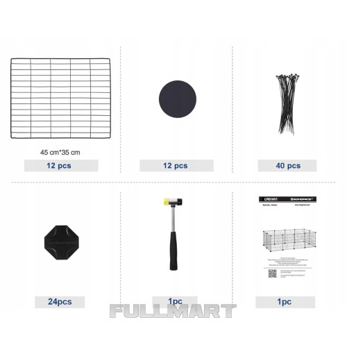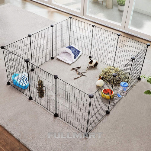 Сетки забора соединены прочными креплениями из АБС-пластика для устойчивости и прочности. Даже если ваш питомец усиленно играет, клетка остается неподвижной. Нескользящие накладки под ноги защищают пол от царапин.