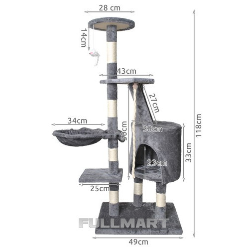 - СКРЕТРАТОР С 4 УРОВНЯМИ - когтеточка в виде дерева высотой 118 см разделена на 4 этажа, по которым кошка может свободно передвигаться и бездельничать, а также прятаться и играть с другими кошками. Прочная конструкция с широким основанием обеспечивает устойчивость когтеточки. Главное преимущество дерева – уютный дом с двухступенчатой лестницей. Котенок сможет свободно отдыхать. На дереве сидит пушистая мышка, которая стимулирует кошачье любопытство и побуждает ее играть или охотиться. Его закрепили на верёвке на 4 этаже дерева.