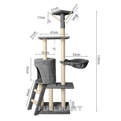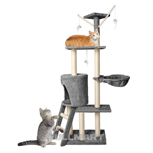 - СКРЕТРАТОР С 5 УРОВНЯМИ - когтеточка в виде дерева высотой 138 см разделена на 5 этажей, по которым кошка может свободно передвигаться и бездельничать, а также прятаться и играть с другими кошками. Прочная конструкция с широким основанием обеспечивает устойчивость когтеточки. Главное преимущество дерева – уютный дом, в который ведут две ступеньки. Котенок сможет свободно отдыхать. На дереве живут три пушистые мышки, которые стимулируют кошачье любопытство и побуждают ее играть или охотиться. Деревья установлены на 4 этаже.