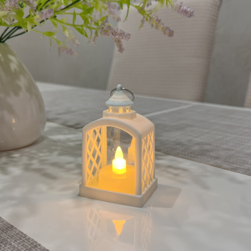 Біла лампадка висотою 9 см – стильне та практичне рішення для створення затишної атмосфери, як удома, так і на вулиці. Працює на батарейках 3 шт, що забезпечують тривале життя без потреби постійного обслуговування.