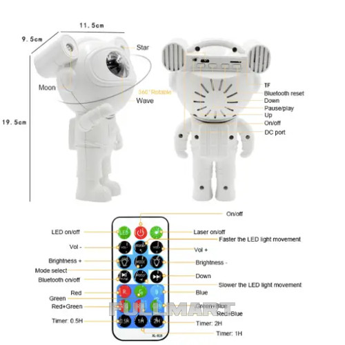 Представляем вашему вниманию лазерный проектор галактики "Астронавт на Луне", отлично подходящий как ночник для юных исследователей вселенной!