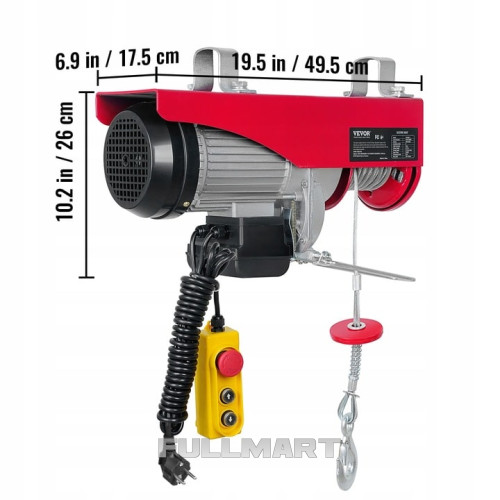 VEVOR, ваш эксклюзивный эксперт по инструментам. Эта электрическая канатная таль оснащена двигателем из чистой меди, который обеспечивает высокую грузоподъемность при подъеме тяжелых грузов. Удлиненный трос (4 м) позволяет управлять тельфером в безопасном месте. Также имеется кнопка аварийной остановки, которая может эффективно защитить вашу безопасность. Широко используется в гаражах, складах, на заводах и т. д.