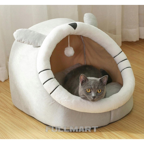 ✅ Лежак для животных в форме закрытой будки с кошачьими ушками.