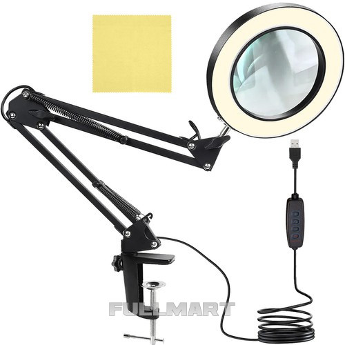 ЧЕРНАЯ КРУГЛАЯ ЛАМПА СО СВЕТОДИОДНОЙ ПОДСВЕТКОЙ И УВЕЛИЧИТЕЛЬНЫМ СТЕКЛОМ