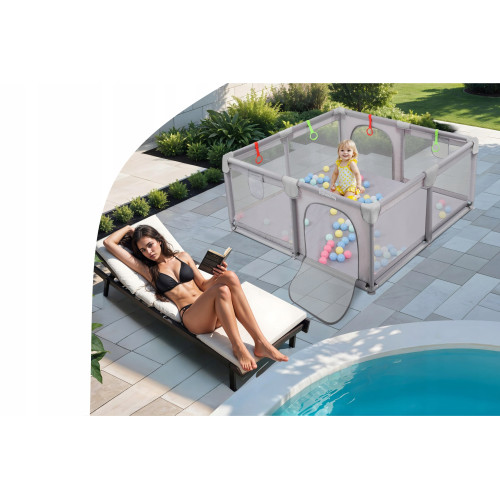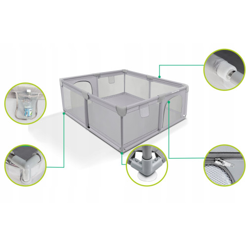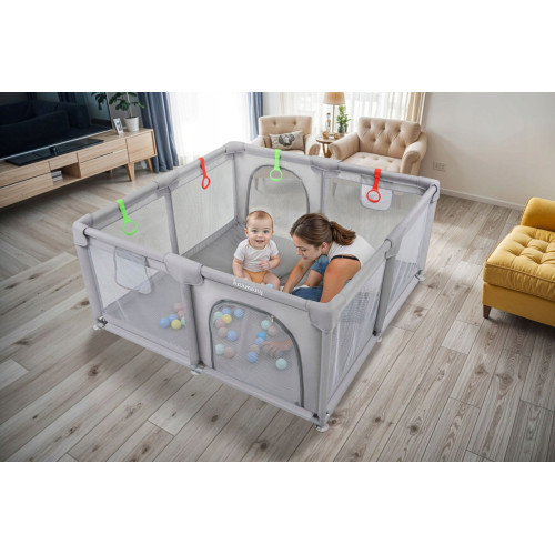 Універсальність манежу робить його незамінним обладнанням як удома, так і під час активного відпочинку. Манеж також чудово підходить для пікніків та сімейних зустрічей, забезпечуючи комфортну та безпечну ігрову зону для наших дітей.