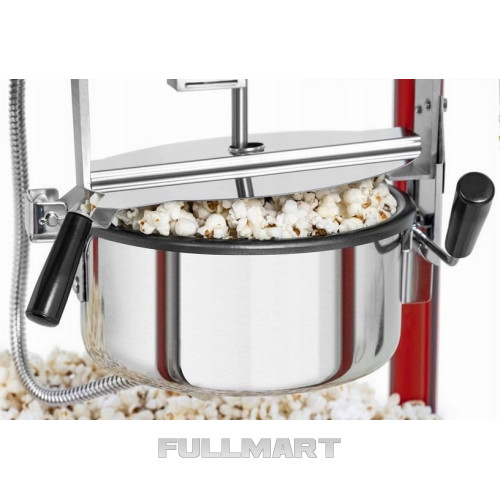 Профессиональная машина для попкорна - мощность 1400 Вт, изготовлена полностью из материалов: нержавеющая сталь, алюминий, закаленное стекло, тефлоновое покрытие, поликарбонат
