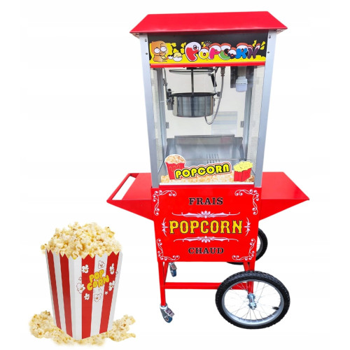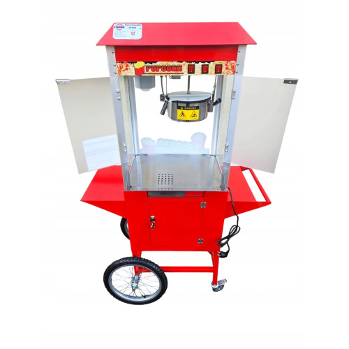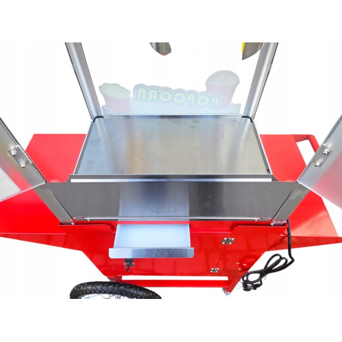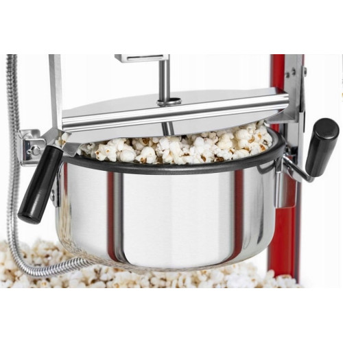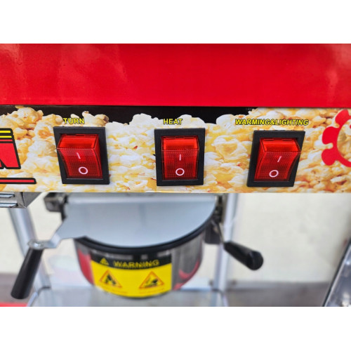 Професійна машина для попкорну - потужність 1400 Вт, повністю виготовлена з матеріалів: нержавіюча сталь, алюміній, загартоване скло, тефлонове покриття, полікарбонат.