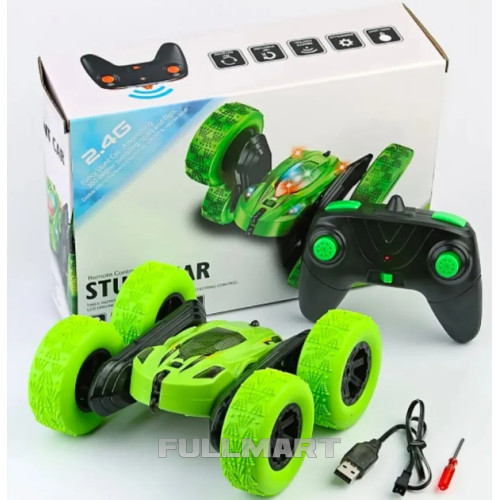 Машинка-перевертыш с ручным управлением Stunt Car подходит для детей старше 6-ти лет. У подрастающего поколения часто меняются вкусы и предпочтения при выборе игрушек, но именно эта модель понравится всем! Благодаря необычной конструкции передних колес перевертыш делает различные трюки, вращается на 360 градусов, двигается во все стороны (вперед, назад, вправо, влево). Имеет световые и звуковые эффекты.